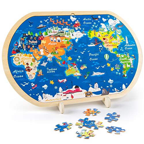 World map puzzle set is an entertaining educational activity for kids to help stimulate and challenge their minds, and aid in development as they play and learn.